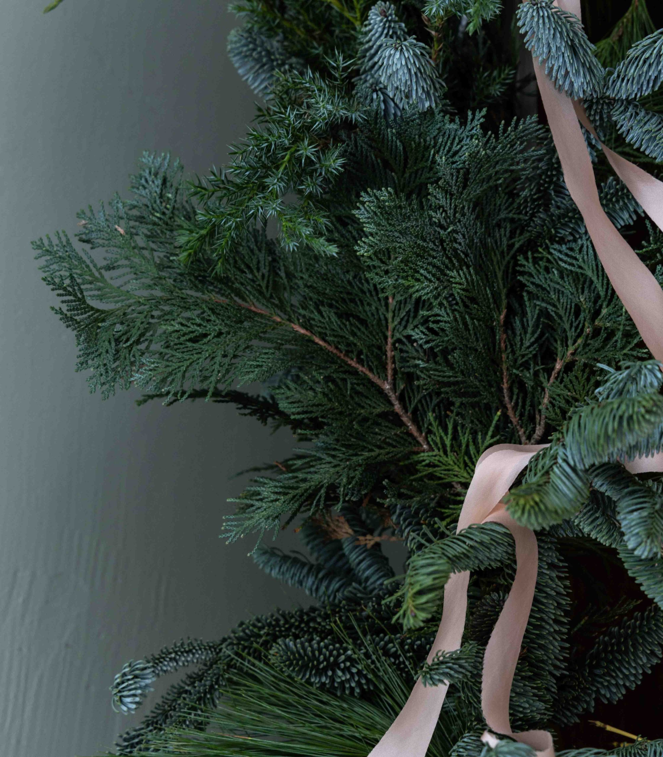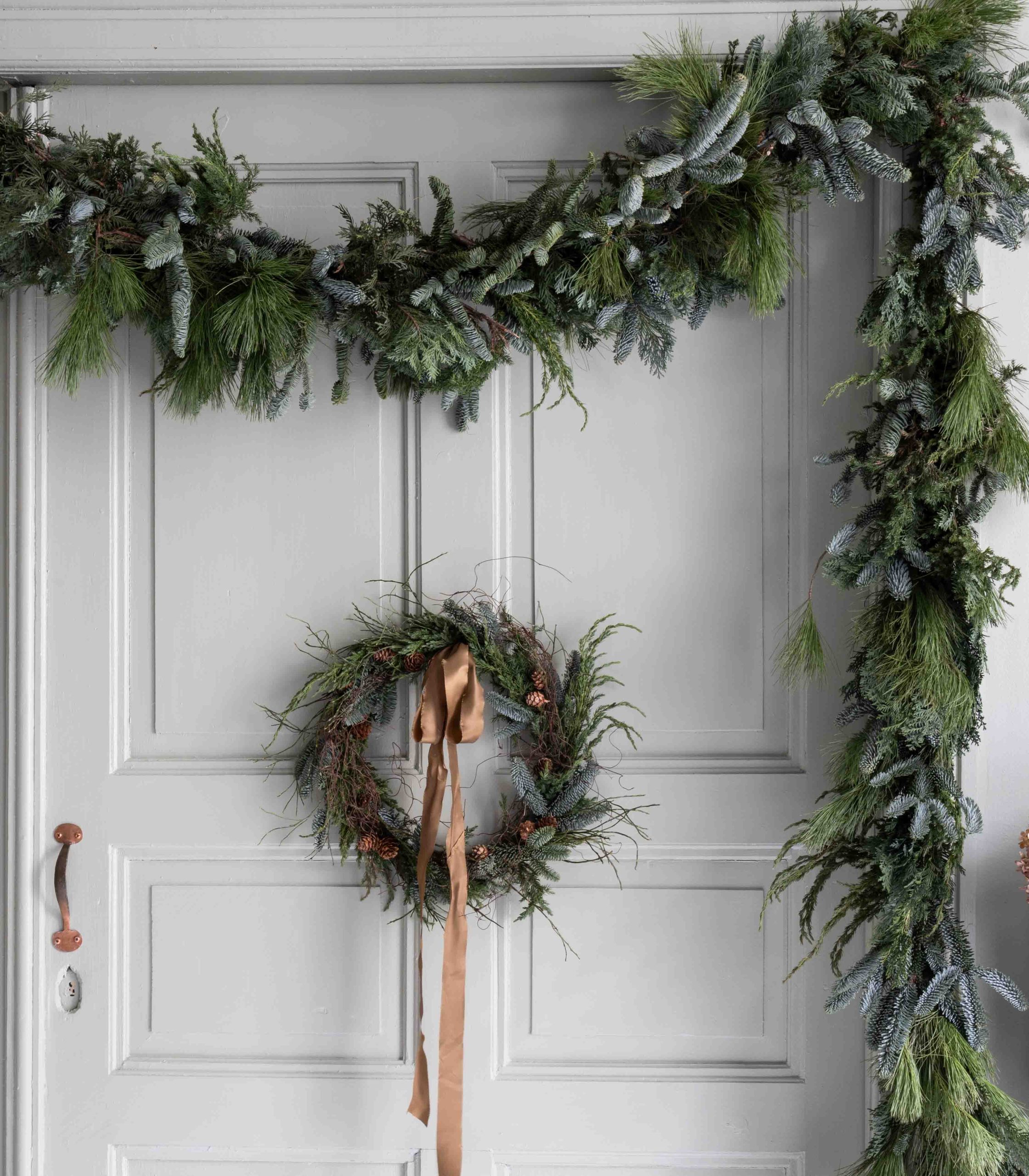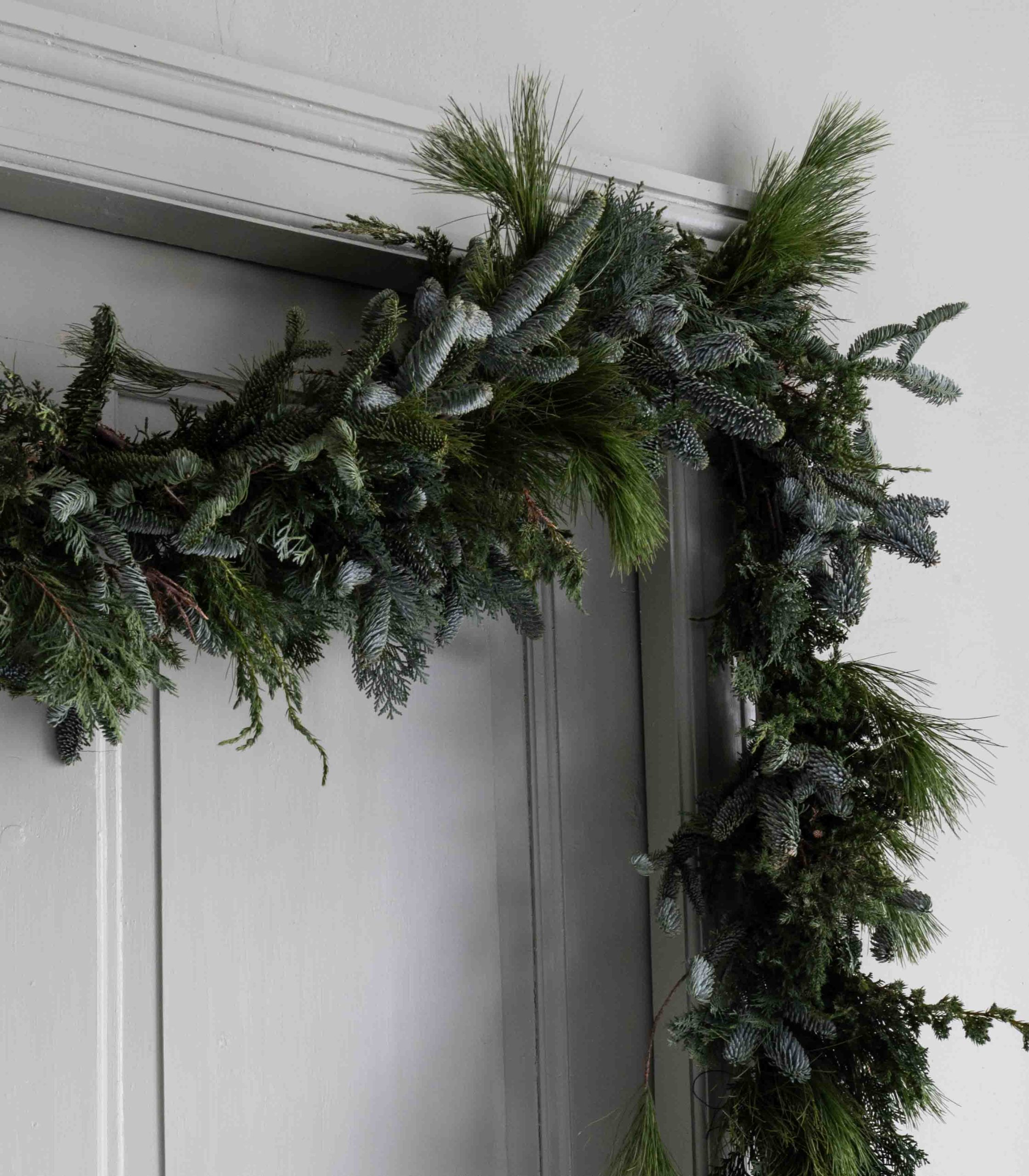 Girlanda wykonana z gałązek igielnych sosny wejmutki, jodły nobilis, jałowca i cyprysika.