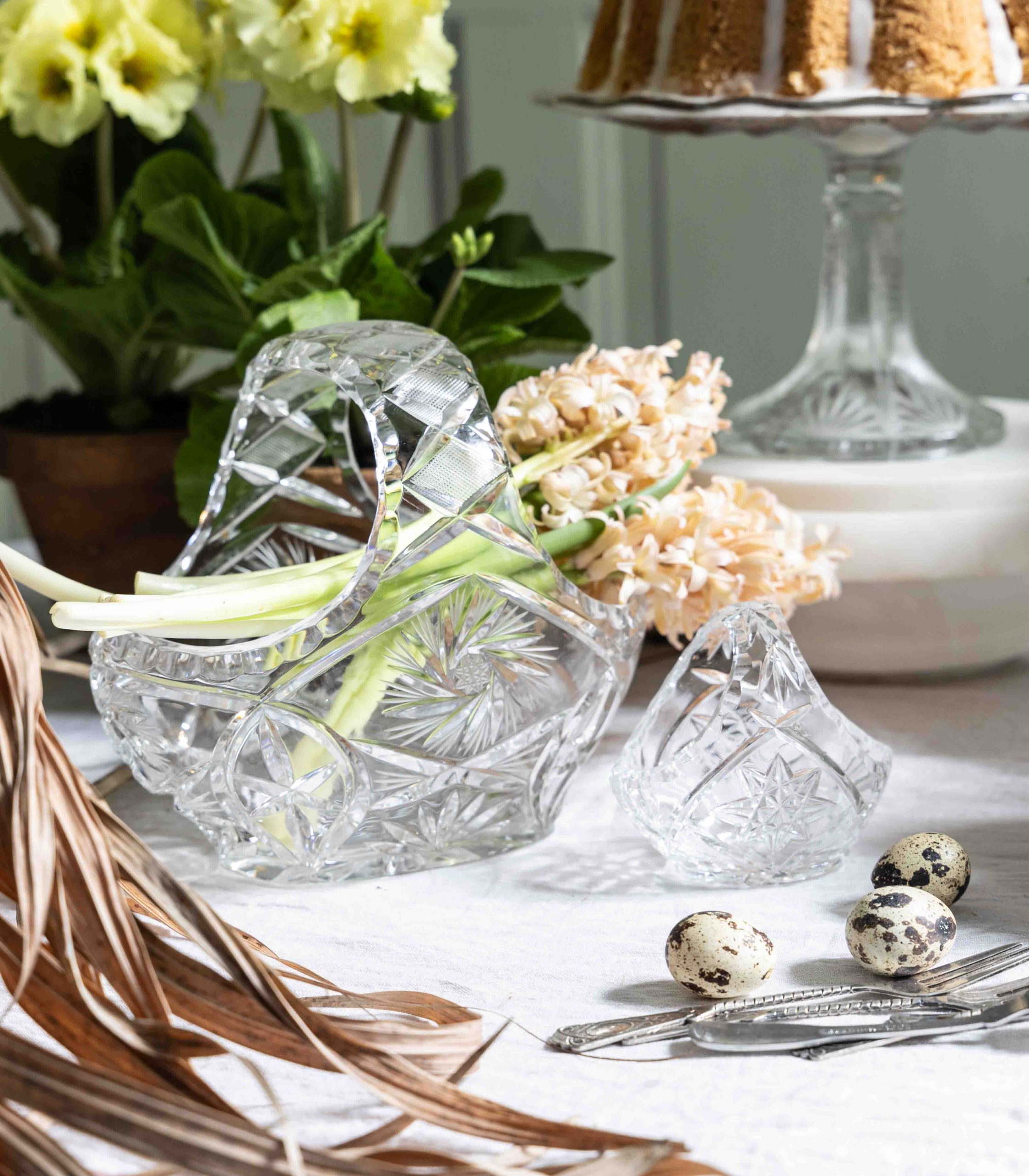Kryształowe koszyki, to piękna, sentymentalna dekoracja świątecznego stołu.